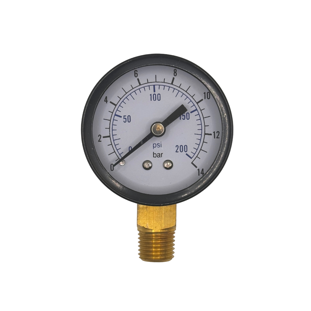 Manómetro, 1/4" NPT, montaje inferior, 0-200 PSI, 2"