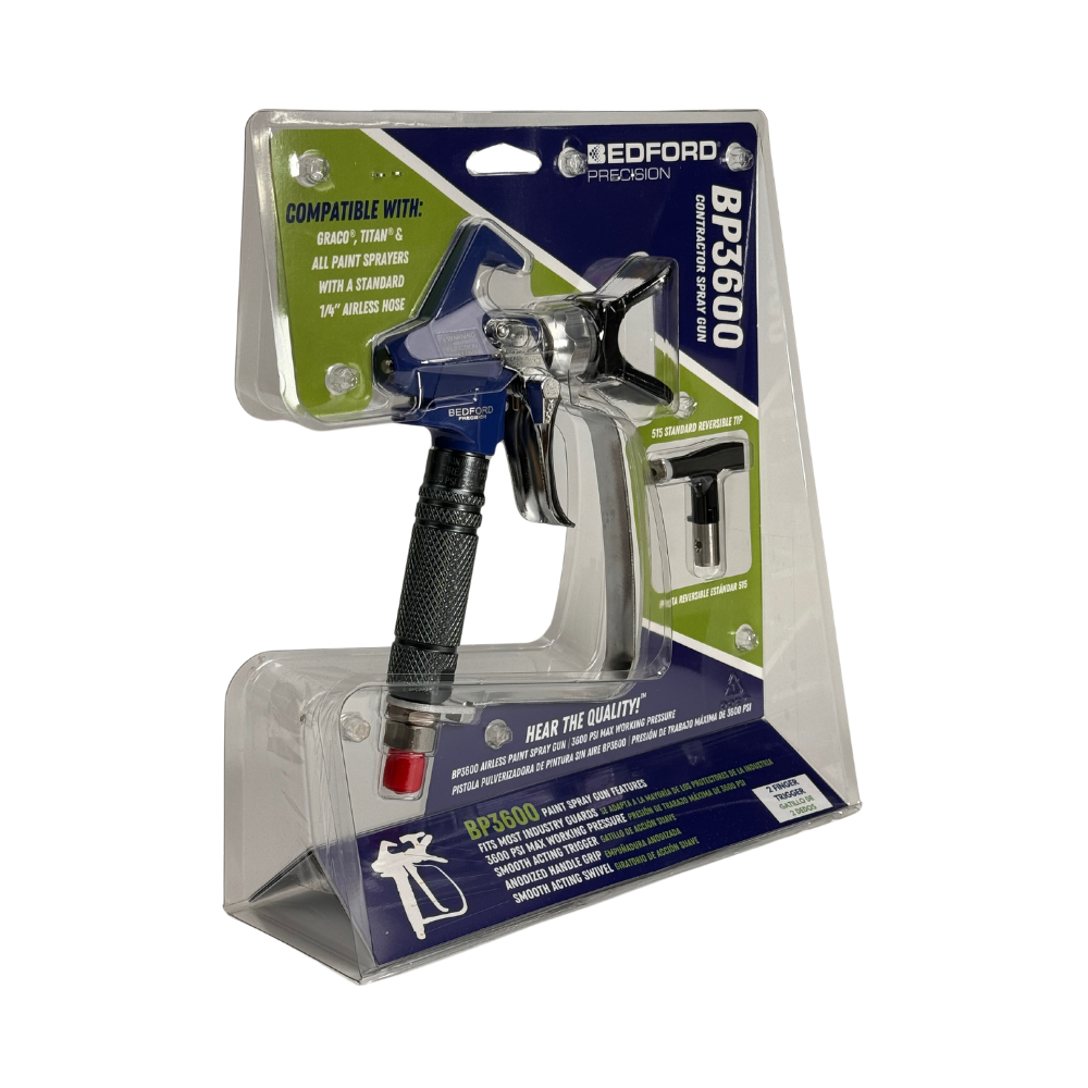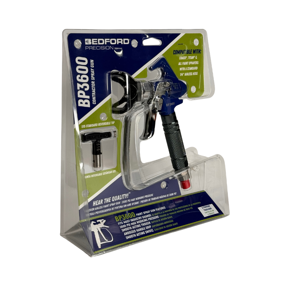 Includes BP3600 Spray Gun with 2-Finger Trigger, Reversible 515 Tip and Tip Guard in a Clamshell Display